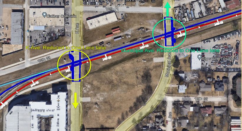 During this construction period, each street will have one (1) lane of traffic open: K Avenue southbound and Municipal Avenue northbound. The work is projected to be completed on March 1, 2023.